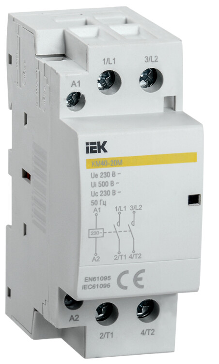 Контакторы модульные типа КМ торговой марки IEK предназначены для применения в сетях переменного тока напряжением до 400 В частоты 50 Гц и служат для коммутации слабоиндуктивных нагрузок с номинальным током до 63 А. Используются для автоматизации и управления различных технологических процессов, в том числе в системах освещения, кондиционирования, вентиляции и т.д.