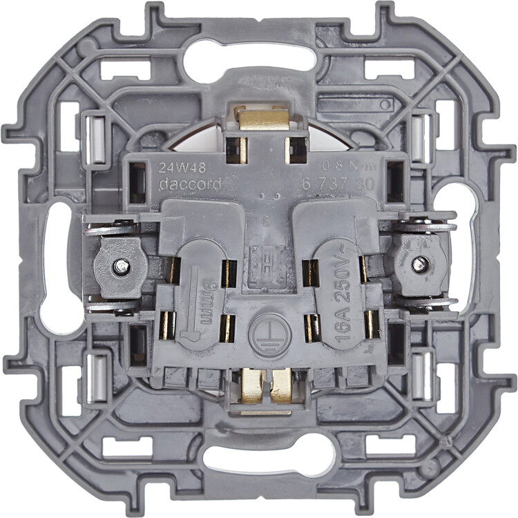 - Контактная группа изготовлена из высококачественной латуни CuZn37, имеет высокую степень упругости и сохраняет плотный контакт с вилкой при длительной эксплуатации