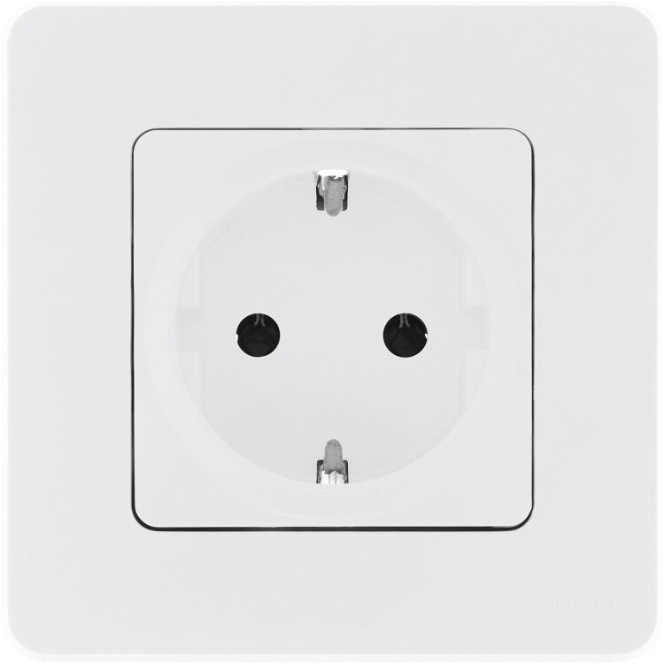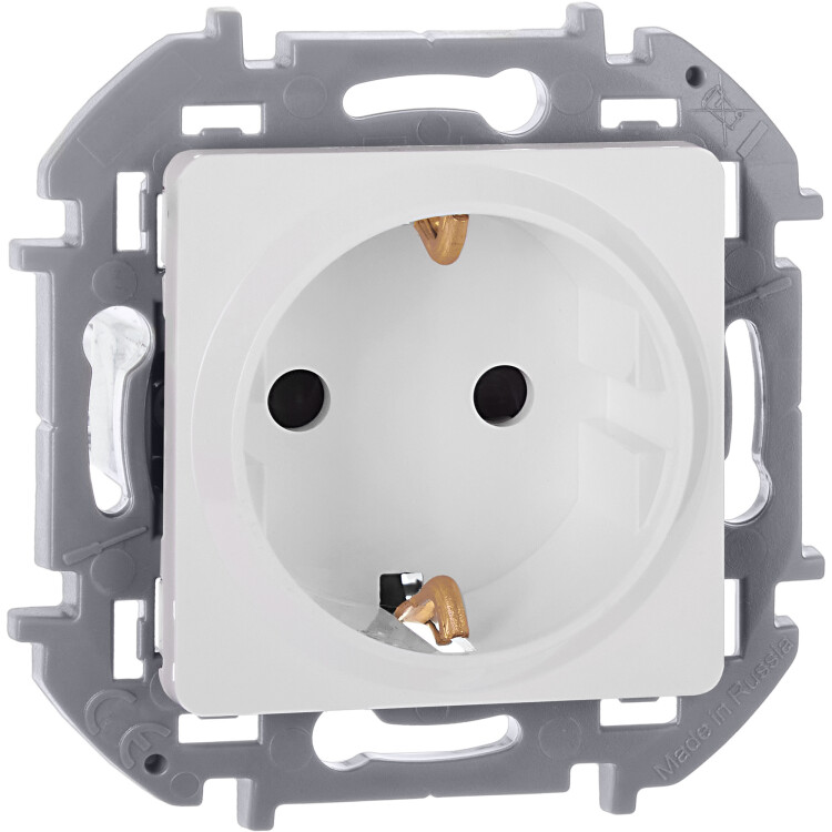 Розетка с заземлением, с защитными шторками для скрытого монтажа Legrand/Daccord Inspiria, цвет "Белый", максимальный ток 16А, напряжение ~250В, максимальная мощность 3680Вт, винтовые зажимы.
