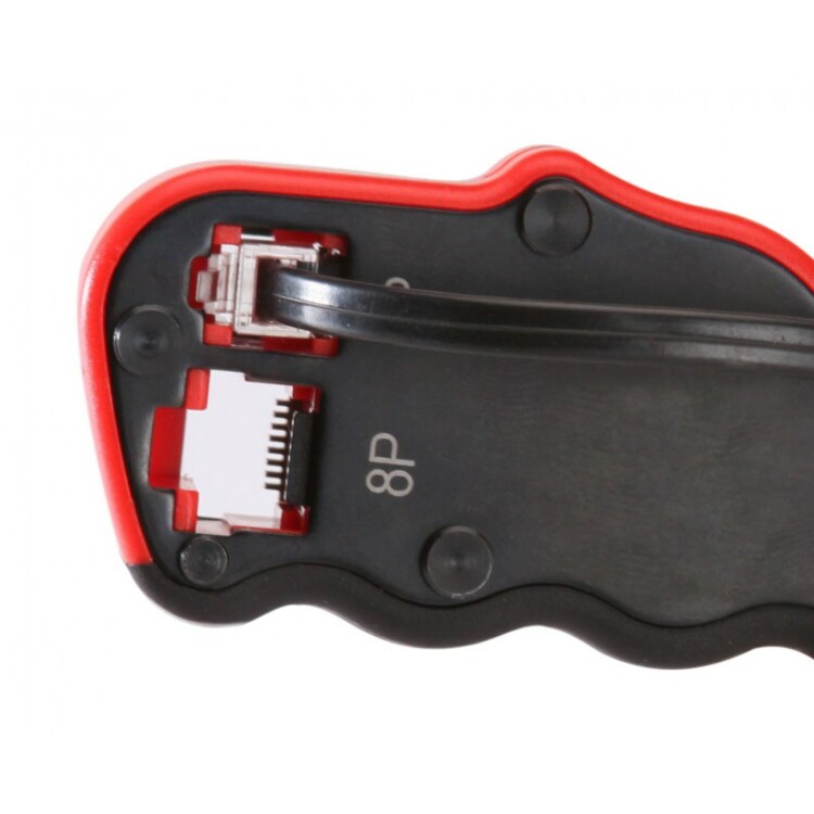 4 в 1:;обжим разъемов RJ;снятие изоляции с плоских телефонных проводов с фиксированной длиной зачистки,;снятие оболочки с круглых проводов типа UTP, STP;резка проводов;Встроенные матрицы: 8Р, 6Р;Параллельный ход пуансонов гарантирует профессиональное качество работ;Обжим разъемов: 8Р8С (RJ-45), 6Р6С (RJ-12), 6P4C (RJ-11), 6Р2С;Блокиратор рукояток, возвратная пружина;Защитная панель, предохраняющая от порезов;Обработка поверхности: воронение;Эргономичные рукоятки из термопластрезины;Инновационный дизайн;Вес: 310 г;Длина: 140 мм;