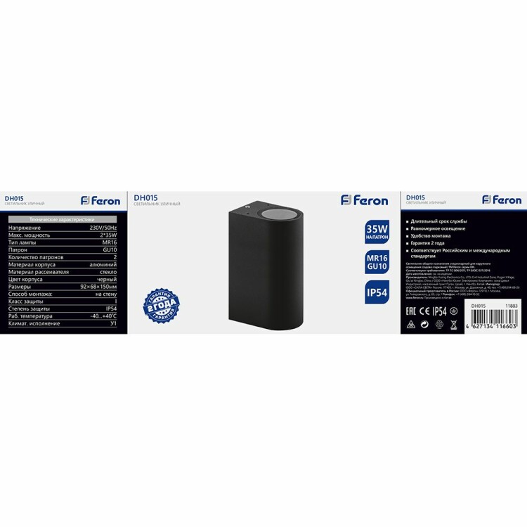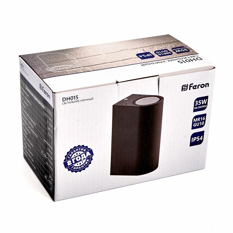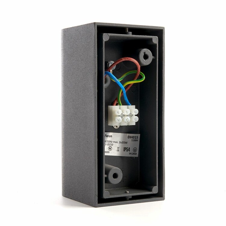 Светильник садово-парковый, серии «Бостон», (ДБУ) FERON DH015 35W, 2*GU10, 230V, IP65, цвет черный, на стену , 68*78*160мм