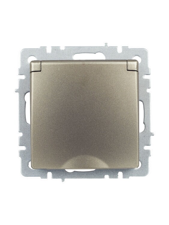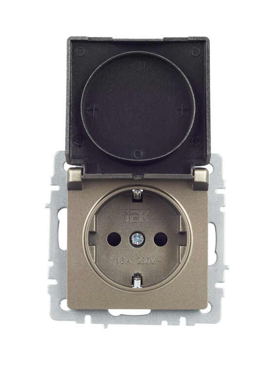 Розетка одноместная IEK РСбш10-3-БрШ Brite (16 А, IP20) скрытой установки, с заземлением и защитными шторками, с крышкой, шампань