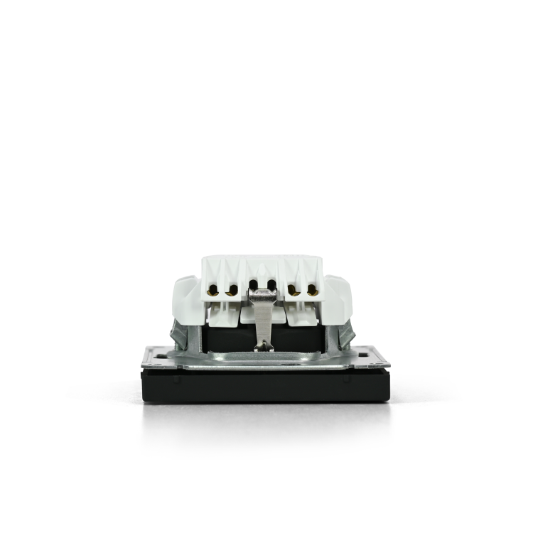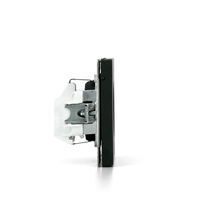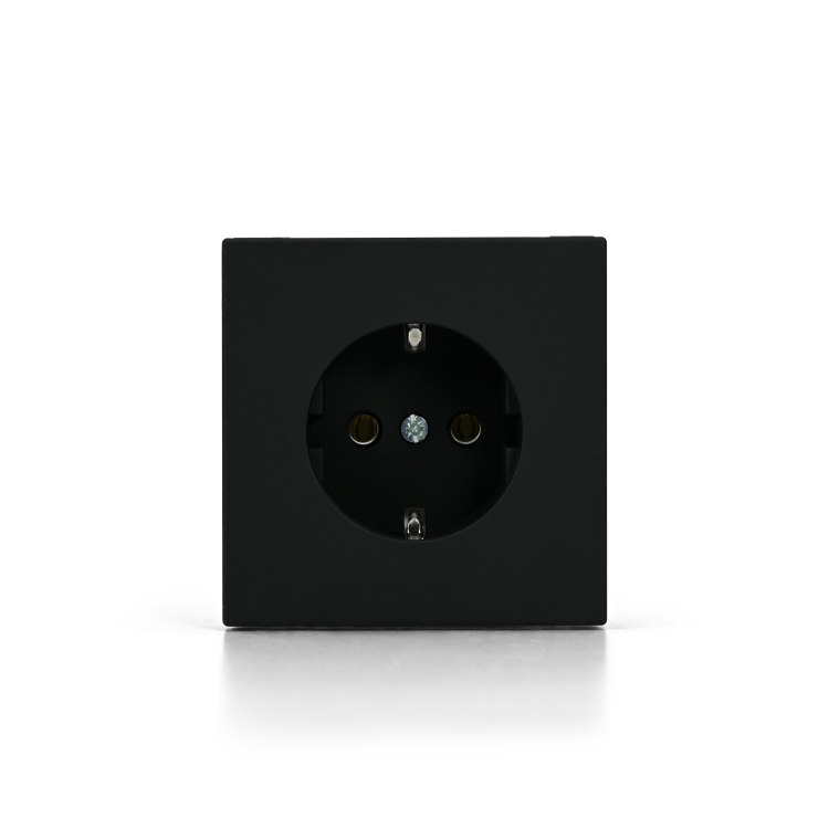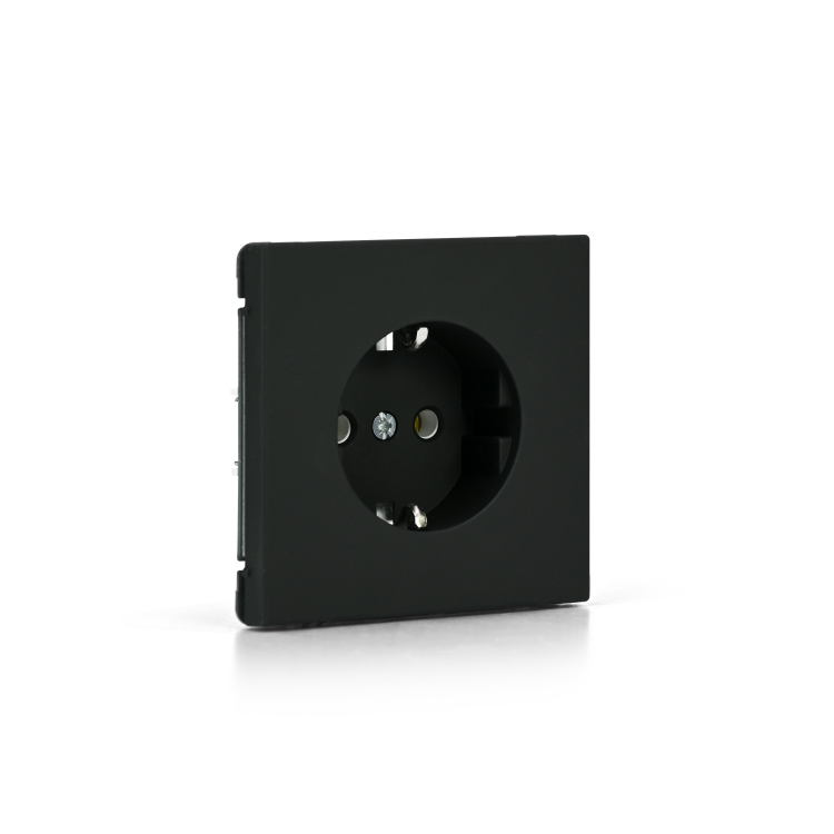 Механизм с быстрозажимными клеммами Systeme Electric серии ArtGallery в цвете карбон розетки одинарной с заземлением и без шторок подходит для сетей 250 В, на ток 16 А.