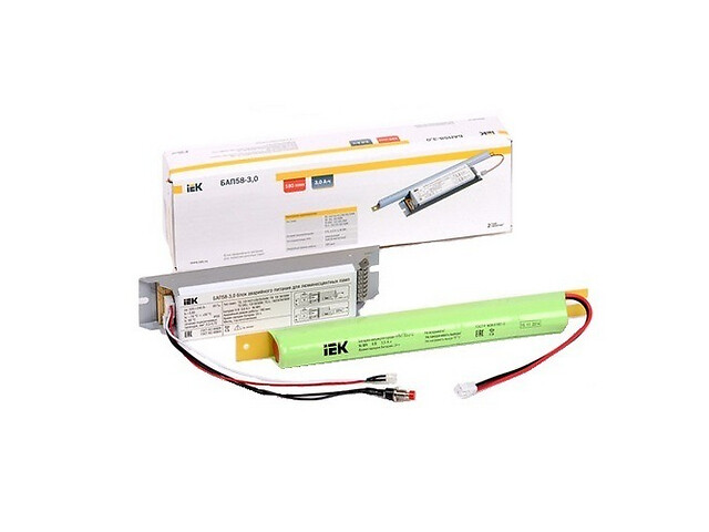 Блок аварийного питания IEK состоит из электронного пускорегулирующего аппарата (конвертера), герметичной никель-металл-гидридной аккумуляторной батареи, светодиодного индикатора наличия сети и подзарядки аккумулятора, кнопки "ТЕСТ".