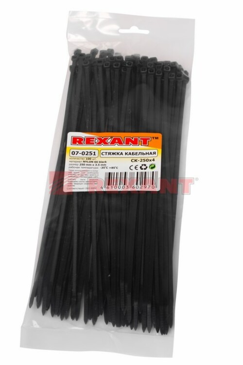Хомут 250*3,6мм нейлон черный Rexant 100шт