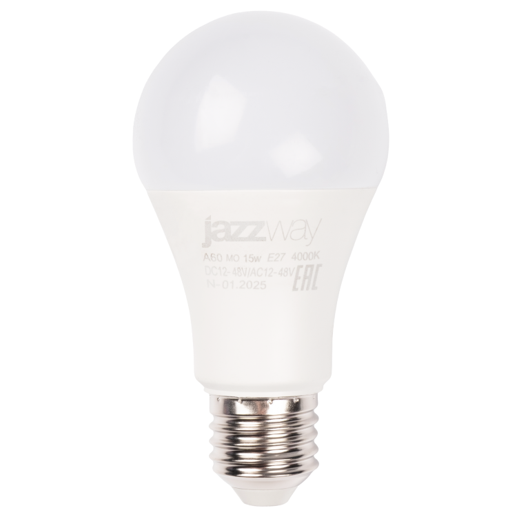 Лампа свд 12-48В Е27 15Вт 4000К 1200лм стандарт А60 матовая Jazzway низковольтная аналог 704032