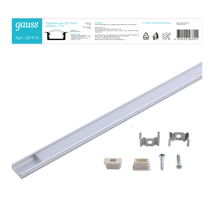 Профиль с экраном встраиваемый 22*7*2000мм Gauss крепеж+заглушки
