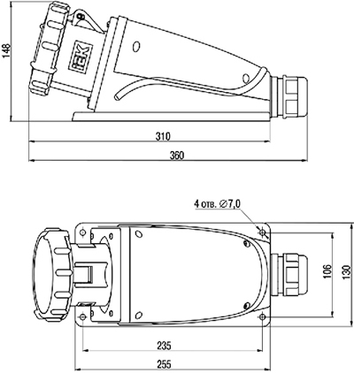 Стационарные разъемы имеют два ввода для кабеля - донный и верхний. В обоих вводах имеются пластиковые мембраны для обеспечения степени защиты от пыли и влаги, срезаемые перед установкой сальника во ввод. |