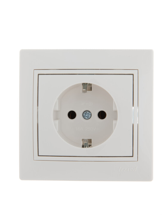 Розетка одноместная Lezard 701-0202-122 Mira (16 А, IP20) скрытой установки, с заземлением, белый