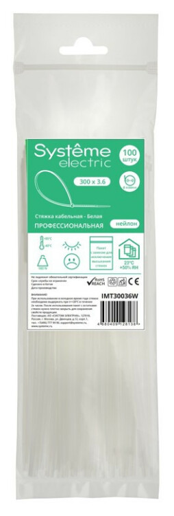 Кабельная стяжка Systeme Electric серии MultiSet в белом цвете предназначена для соединения кабелей и проводов в жгуты и их крепления к элементам строительных конструкций и кабельных лотков. Широко применяются для организации кабельных трасс в щитовом оборудовании. Температура эксплуатации: -40…+85°С. Поставляется упаковками по 100 штук в пакете с ЗИП-замком и имеет длину 300 мм и ширину 3,6 мм. Подходят для использования внутри помещений.