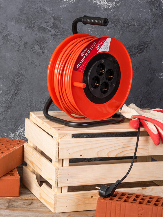 Удлинитель 4-мест 50м ПВС 3*1 красный катушка пластик IP20 EKF