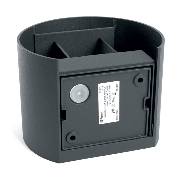 Светильник уличный светодиодный, на стену (ДБУ) FERON DH013, серия Майами, 6W, 4000К (белый натуральный), 230V/50Гц, 450Lm, IP54, 2LED*COB, класс защиты 1, раб.t -40°C...+40°C, цвет черный, корпус алюминий, 100*115*135мм,