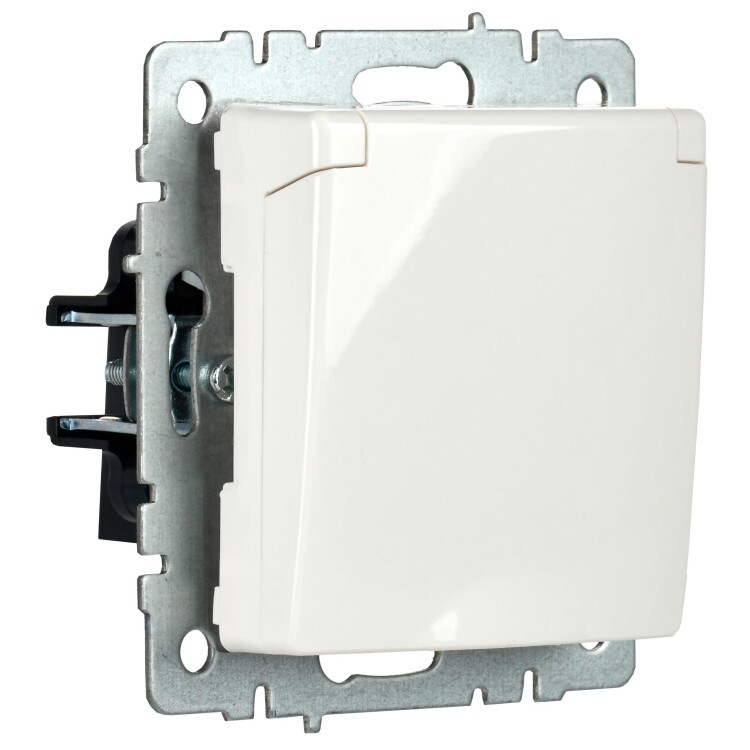 Розетка одноместная IEK РСбш10-3-БрБ Brite (16 А, IP20) скрытой установки, с заземлением и защитными шторками, с крышкой, белый
