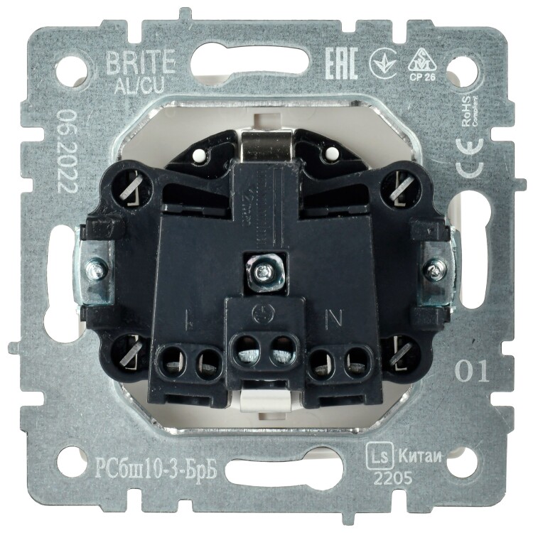 Розетка IEK серии электроустановочных изделий Brite предназначена для скрытой установки внутри помещений.