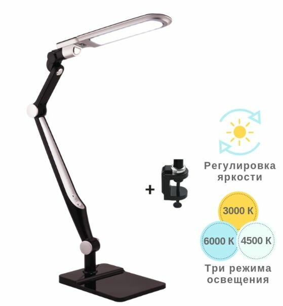 Светильник светодиодный настольный Artstyle TL-402B (10 Вт, 580 лм, 3000 - 6300 К, диммер, сенсор, струбцина + подставка), черный / серебро