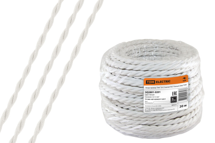 Ретро 2*1,5 белый провод витой РЭМЗ ТМ 20м