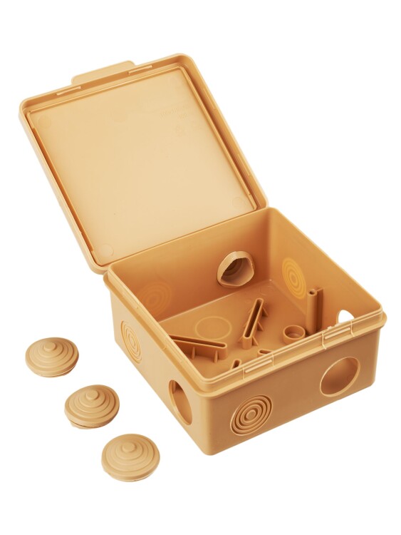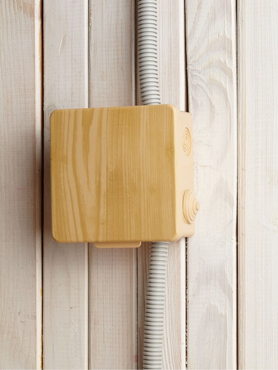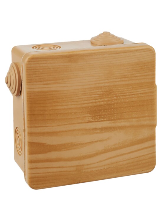 Распределительные коробки с текстурой под дерево незаменимы в загородном деревянном домостроении, подходят для разветвления проводки в помещениях, декорированных деревом.