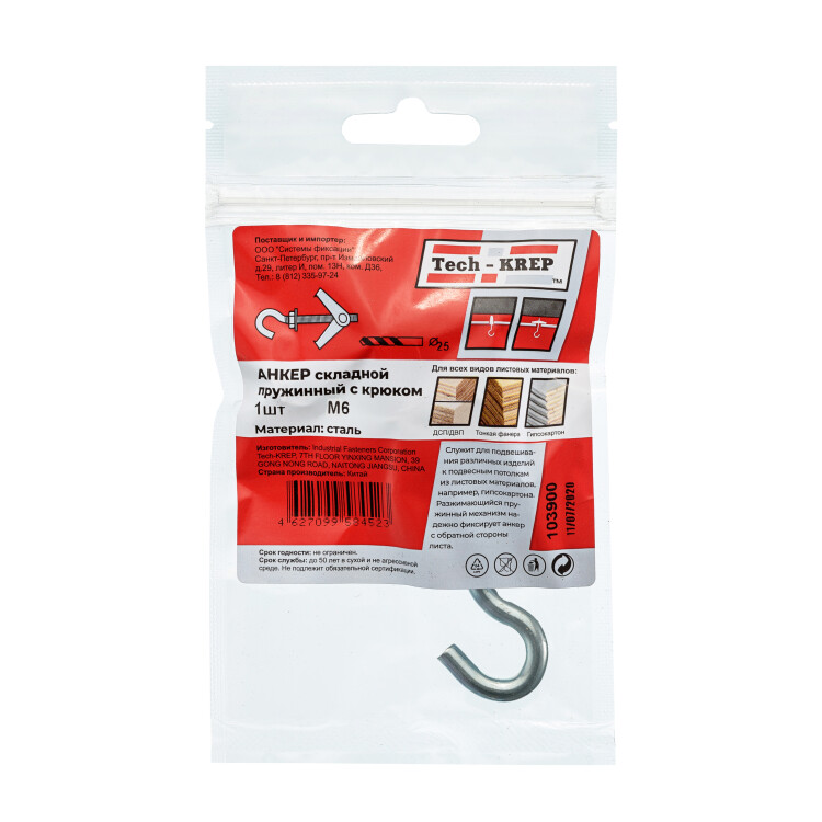 Особенности: в пустоте пружинный механизм дюбеля автоматически раскрывает стопорные крылья, образуя надежную опору.