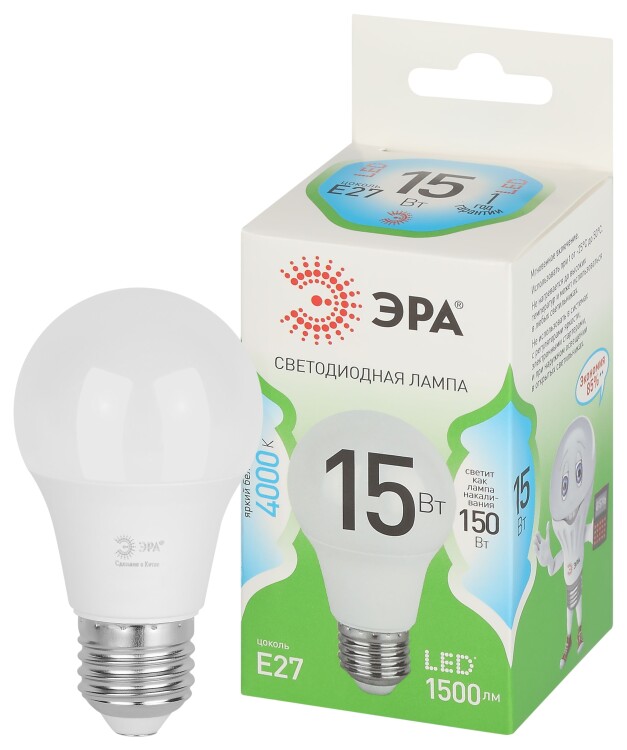 Лампа светодиодная Green Line LED A60-15W-840-E27 GL "Эра" (А60 груша, 15 Вт, 1500 лм, 4000 К)