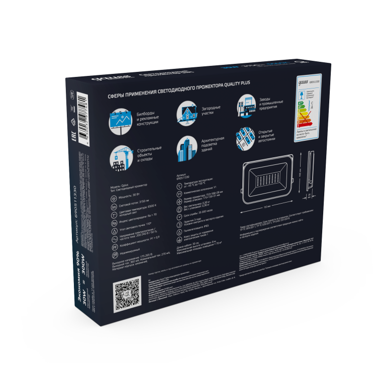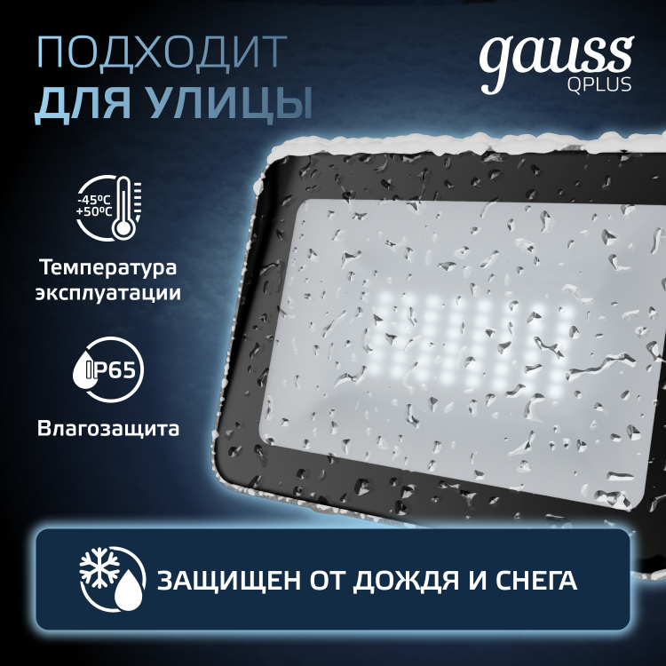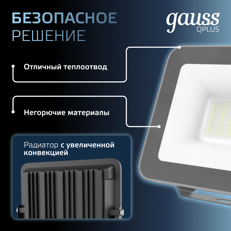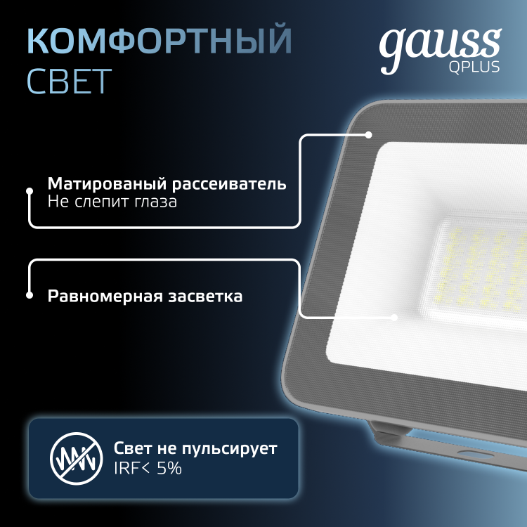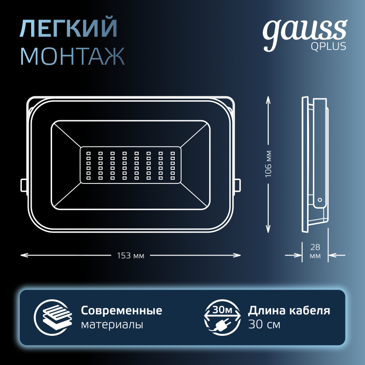 Прожектор свд 30Вт 6500К 2250лм графит IP65 80° Qplus Gauss