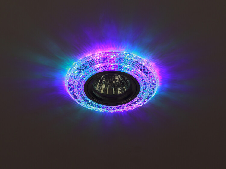 Светильник потолочный встраиваемый точечный для кухни спальни детской GU5.3 / Светодиодная подсветка. Встраиваемый светильник DK LD3 SL/RGB со светодиодной подсветкой станет превосходным решением для любого помещения: его можно разместить в спальне, в детской или на кухне. Светильник с подсветкой можно использовать как в качестве базового освещения, так и для создания акцентов в определенных зонах комнаты. Благодаря скрытой части корпуса светильники можно встраивать в потолок или стены, создавая разный дизайн помещений. Встраиваемый светильник ЭРА с приятным дизайном подойдет для помещений с разным интерьером: от минимализма до хай-тека, прованса или скандинавского стиля. Прозрачный корпус светодиодной подсветки выполнен из полимера, а цветовая температура составляет 4000К. Такая температура оптимальна для глаз и не заставляет их испытывать дискомфорт. Максимальная мощность лампы – 50 Вт. Корпус встраиваемого светильника изготовлен из ударопрочного и стойкого к коррозии материала - алюминия, что делает его особенно удобным в использовании. Диаметр отверстия, требуемого для установки светильника составляет 65 мм, а диаметр самого светильника – 100 мм. Цоколь под лампу GU5.3 в комплекте. Купив встраиваемый светильник бренда ЭРА, вы останетесь довольны и сможете создать уют в доме. Внимание: лампа не входит в комплектацию.