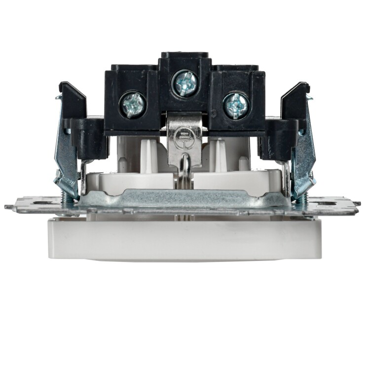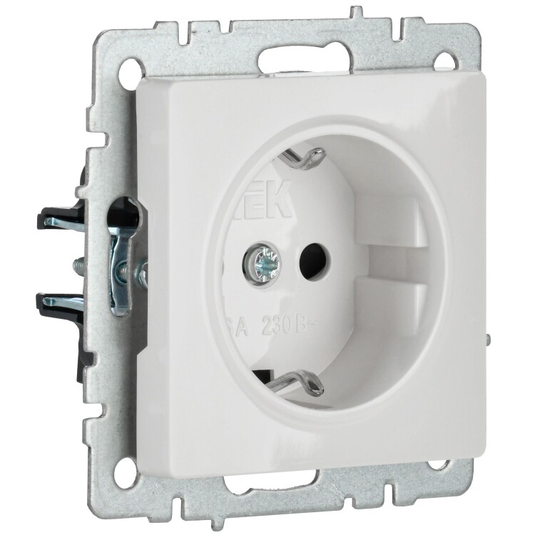 Розетка одноместная IEK РС14-1-0-БрБ Brite (16 А, IP20) скрытой установки, с заземлением и защитными шторками, белый