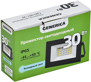 Прожектор светодиодный Generica СДО 001-30 (30 Вт, 2400 лм, 6500 К, IP65), черный