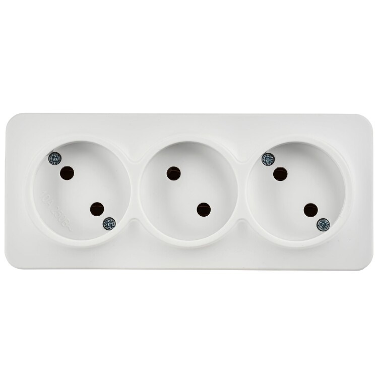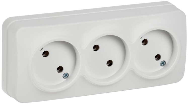 Розетка трехместная IEK РС23-2-ХБм Glory (10 А, IP20) открытой установки, белый матовый