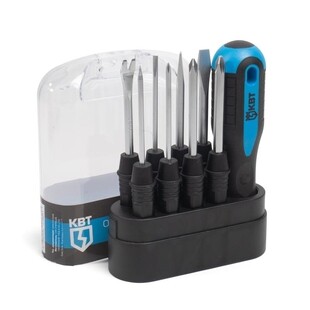Состав набора:отвертка шлиц: 3х60, 5х60, 6х60 мм;отвертка PH: PH0х60, PH1х60, PH2х60;шило;мини-гвоздодер;рукоятка;пластиковый пенал;;Материал бит: хром-ванадиевая сталь;Вращающаяся насадка на каждом стержне;Надежное крепление сменных стержней в рукоятке;Двухкомпонентная рукоятка с мягкими вставками из термопластрезины;Отверстие в рукоятке отвертки для подвешивания;Каждая отвертка хранится в отдельной ячейке;Упаковка: пластиковый пенал;Вес: 295 г;