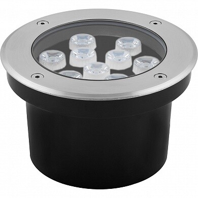 Тротуарный светильник светодиодный, встраиваемый (ДВУ) FERON SP4113, 9W, 6400К (холодный белый), 230V/50Гц, 720Lm, IP67, угол рассеивания 24°, 9LED*HPL, класс защиты 1, цвет металлик, корпус алюминий, сталь, 160*160*90мм, D внутр. 110мм