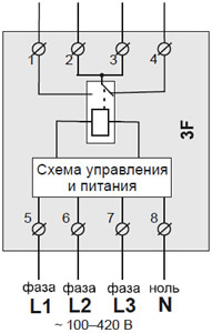 При выходе напряжения на любой из фаз реле отключит нагрузку по всем фазам.