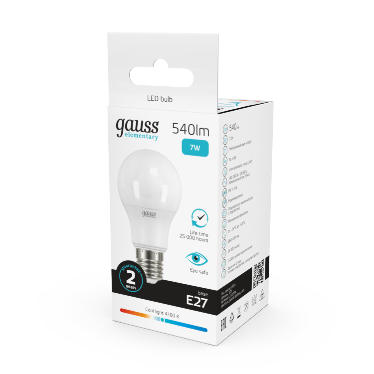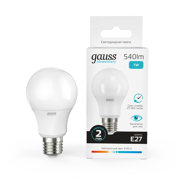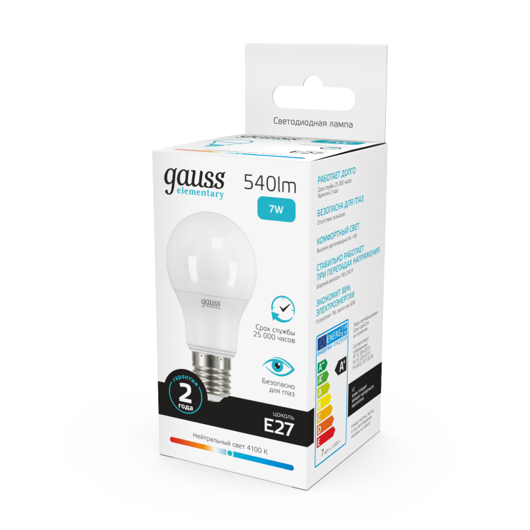 Лампа свд 220В Е27 7Вт 4100К 540лм стандарт A60 матовая Gauss