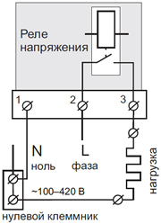 - Сечение проводов проводки, к которой подключается реле напряжения, должно соответствовать величине электрического тока, потребляемого нагрузкой.