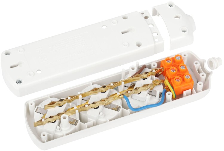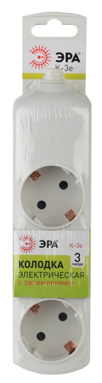 Колодка электрическая Эра K-3e с заземлением, 3 розетки. Корпус выполнен из ударопрочного и негорючего пластика. Рассчитана на максимальную мощность 16А / 3500 Вт и для подключения кабеля сечением до 1,5мм2. Электрическая колодка подойдет для тех, кто хочет сделать удлинитель самостоятельно. Также может использоваться как накладные розеточные блоке в подсобных помещениях.