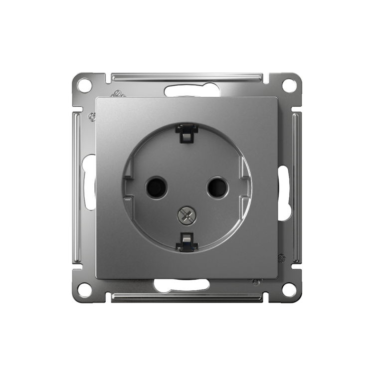 Атлас сталь розетка скрытая 1-мест заземление шторки IP20