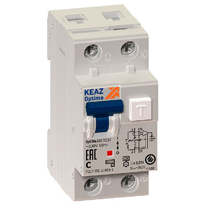 Автоматический выключатель дифференциального тока OptiDin D63-22C125A-УХЛ4 КЭАЗ (2P, 25 А, характеристика срабатывания C, 30 мA)