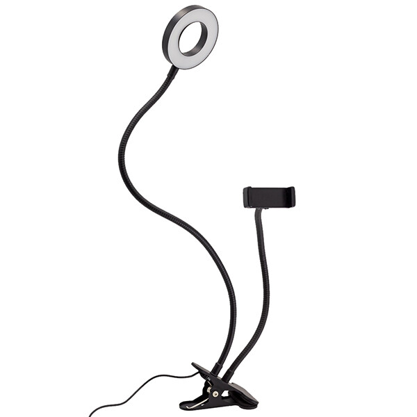 Светильник светодиодный кольцевой Artstyle TL-604B (12 Вт, 720 лм, 3200 - 5500 К), с держателем, на прищепке, черный