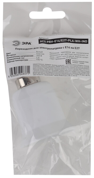 Патрон-переходник Е14-Е27 пластик белый ЭРА