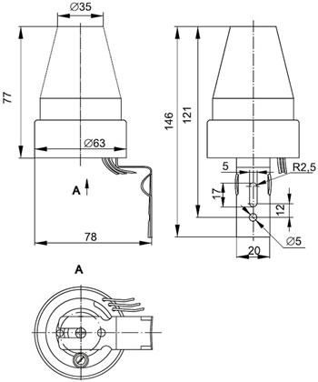 1 - защитный кожух. 3 - крепежный уголок. 5 - регулятор освещенности LUX. |