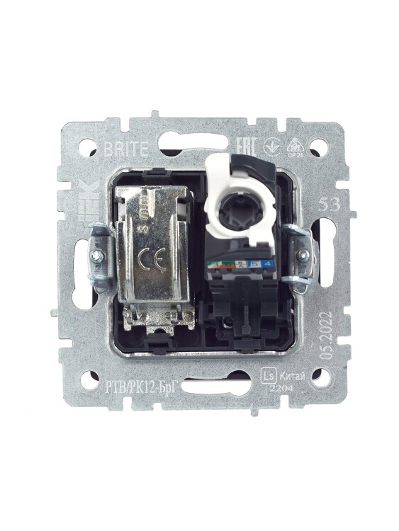Розетка двойная TV+RJ45 IEK серии электроустановочных изделий Brite для скрытой установки внутри помещений.