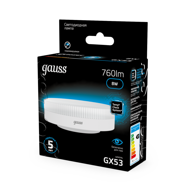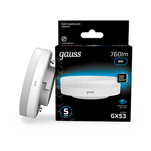 Лампа свд GX53 8Вт 6500К 760лм таблетка матовая Gauss Black