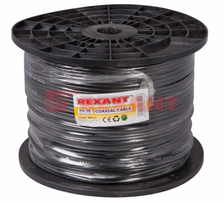 Техническое описание кабеля RG-58 A/U (75 Ом) REXANT .Кабель коаксиальный радиочастотный со вспененной полиэтиленовой изоляцией в ПВХ оболочке.Кабель RG-58 A/U REXANT применяться для передачи высокочастотного сигнала в различных системах связи, подключения внешних антенн, радио телевещательных системах .Используется для подключения внутренних и межблочных соединений.Конструкция:Внутренний проводник многожильный из медной проволоки Диаметр по внутреннему диэлектрику 3 +/- 0,1 ммДиэлектрик, физически вспененный полиэтилен Экран из фольги наложен поверх диэлектрикаВнешний проводник из медной проволоки в виде оплёткиДиаметр проволоки в оплётке 0,12 - 0,15 ммПлотность оплетки 64%Наружный диаметр 5 +/- 0,2 ммМатериал оболочки ПВХЦвет оболочки чёрныйДлина 305 метровТехнические характеристики:Волновое сопротивление 50 +/- 3,0 ОмСопротивление связи 200 мОм/мРабочая температура -40 +60 СМинимальная температура монтажа -5 СМинимальный срок службы 15 лет