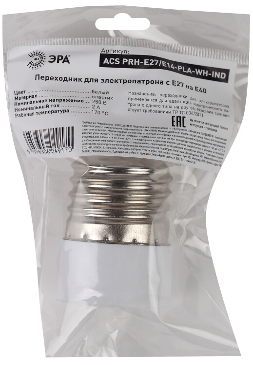 Патрон-переходник Е27-Е14 пластик белый ЭРА