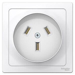 Розетка силовая 2P+N Schneider Electric BLNSR003231 серии электроустановочных изделий Blanca предназначена для подключения к сети электроплит и силовых установок.