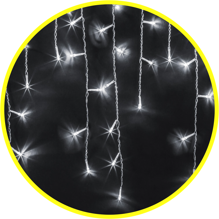 тип гирлянды - бахрома ; цвет свечения - белый; режим искрящийся снег ; размер - 2х0,5 м; длина провода до первого светодиода - 1,5 м; количество светодиодов - 100 шт; расстояние между светодиодами - 8 см; соединение в линию до 5 гирлянд; расстояние между нитями - 10 см; тип провода - прозрачный морозостойкий ПВХ; степень защиты - IP44; температура эксплуатации от -40 до +40°С; срок службы - 50000 часов; гарантия - 12 месяцев.