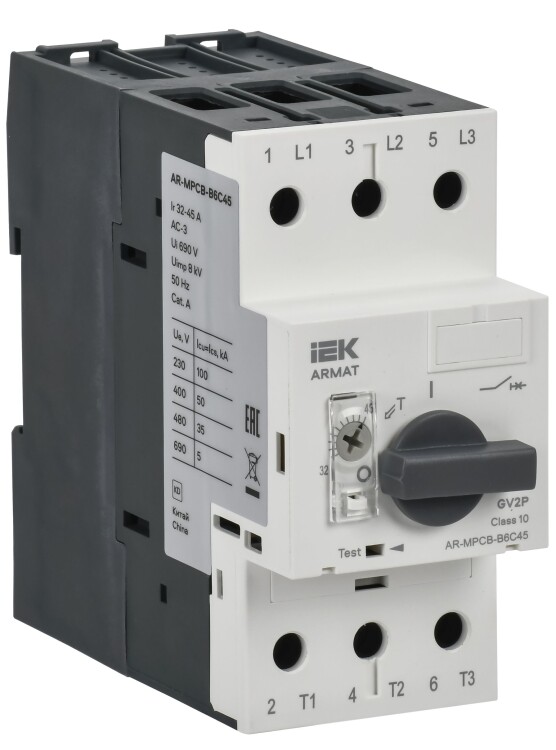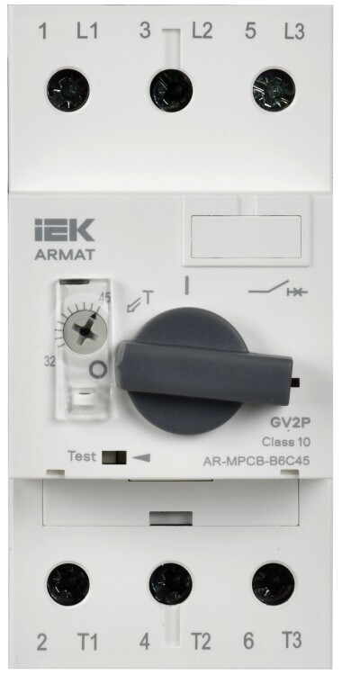 Автоматический выключатель защиты двигателя типа GV2P серии ARMAT предназначен для управления электроприводами с трехфазными асинхронными электродвигателями и для защиты от перегрузки, коротких замыканий и неполнофазных режимов работы. Выключатель защищает рабочие части электродвигателей от перегрузок во время запуска, поскольку пусковые токи при включении двигателя могут значительно превышать номинальные значения. Выключатель обеспечивает точную настройку и гибкую реакцию на пиковые пусковые токи. Эффективная защита от скачкового повышения тока при запуске электродвигателя способствует увеличению срока эксплуатации электроприборов. По своим конструктивным и техническим характеристикам автоматический выключатель защиты двигателя типа GV2P серии ARMAT соответствует требованиям ТР ТС 004/2011, ТР ЕАЭС 037/2016.