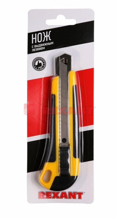 Нож REXANT с выдвижным лезвием отличный помощник для разрезания различныx материалов: пластика, линолеума, кровельныx материалов, гипсокартонныx и гипсолитовыx плит, бумаги, картона и т.д.Корпус ножа выполнен из ABS пластика, что позволяет прикладывать меньше усилий при резке и обеспечивает долгий срок службы. Лезвие шириной 18 мм изготовлено из высококачественной инструментальной стали, фиксируется автоматически. Когда крайний сегмент затупляется, его можно отломить и продолжить использовать инструмент.Замена лезвия осуществляется вручную.