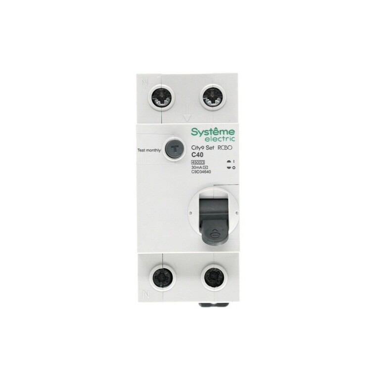 Автоматические выключатели дифференциального тока (АВДТ) серии City9 Set Systeme Electric,1P+N, номинальный ток 40 А, характеристика С, Icn = 4.5 кА, ток утечки 30 мА, тип АС. АВДТ применяется в электрических сетях напряжением 230В. Предназначен для защиты сети от перегрузок, людей от поражения электрическим током и токов короткого замыкания. Уставка по току утечки 30 мА обеспечивает гарантированную защиту людей при прямом прикосновении. Кнопка тест обеспечивает проверку работоспособности аппарата. Крепление на DIN-рейку шириной 35 мм. Безопасные клеммы (ранее Schneider Electric Easy9 EZ9D34640).