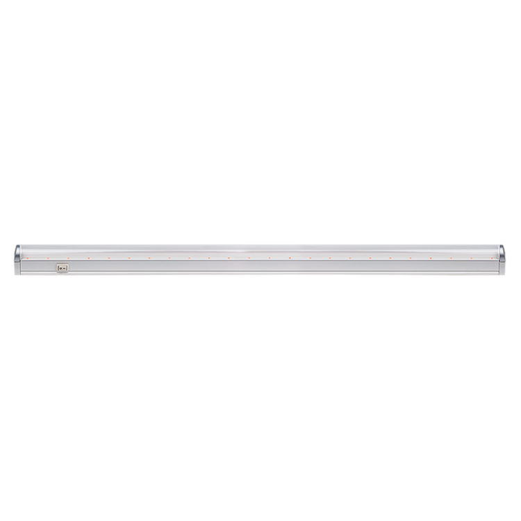 Светильник используется в качестве дополнительного источника освещения для растений при недостатке или отсутствии естественного солнечного света на всех этапах роста. Установка. Светильник устанавливается на рекомендуемом расстоянии от поверхности листьев растений 1020 см. Светильники можно подключать в линию. В комплект входят сетевой шнур с вилкой (длина 1 м), комплект для подвесного монтажа, соединительный кабель (длина 27 см), крепежные клипсы, винты, заглушка. С помощью тросов (длина 1 м) для подвеса можно регулировать высоту размещения светильника по мере роста растений. Встроенный драйвер входит в комплект поставки. Конструкция. Корпус светильника из поликарбоната. Рассеиватель прозрачный поликарбонат. Цвет свечения: красный 650 нм, синий 450 нм (соотношение красного и синего спектра 5:1). Выключатель на корпусе светильника. Угол освещения: 120. Частота: 50-60 Гц. Коэффициент пульсации: 5%. Коэффициент мощности: cos 0,6. Климатическое исполнение: УХЛ4. Светильники, предназначенные для установки непосредственно на поверхности из нормально воспламеняемых материалов. Фотонный поток, мкмоль/с: 18,0. Освещаемая область, м2 (0,1м / 0,2м / 0,3м): 0,42 / 0,84 / 1,24. Фотосинтетически активное излучение (0,1м / 0,2м / 0,3м): 87,0 / 43,0 / 27,0. Кол-во в линию: 8. Срок службы светодиодов: 25 000 часов.