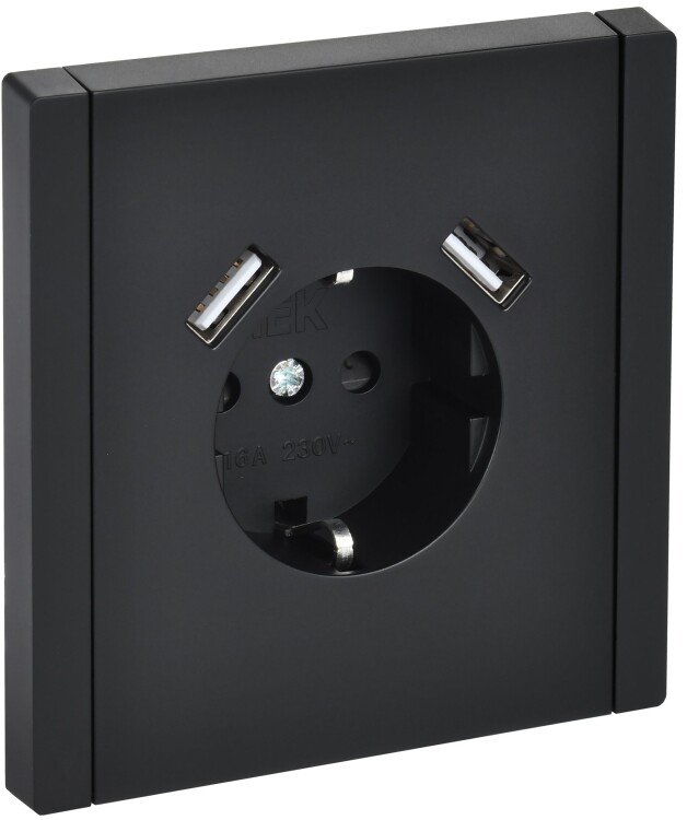 Розетка одноместная IEK FP145 Forte&Piano (16 А, IP20) скрытой установки, с заземлением и шторками, с разъемами USB A+A (3,1 А), черный